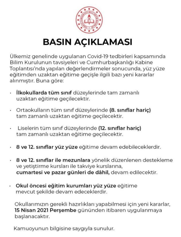 Peki okullar ne zaman kapanıyor? 2021 eğitim öğretim yılı 7 eylül 2020 pazartesi günü açılacak. Binlerce öğrenci yaklaşık 3 hafta sürecek tatille birlikte yılın ikinci tatilini yapmış olacaklar. Sabırsızlıkla beklenen yaz tatili bu yıl ne zaman başlıyor? Koronavirüs salgını nedeniyle uzaktan eğitim sistemine geçen öğrenciler, ilk ara tatilin ardından gözlerini yarıyıl tatiline çevirdi.